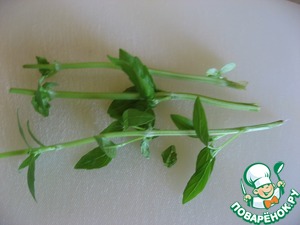 Стебли базилика и маленькие листочка, оставшиеся около стебля подровнять Жёсткую часть стебля около корня удалить.
