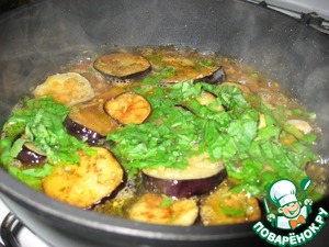 Баклажаны выложить поверх приготовленной овощной пассеровки.