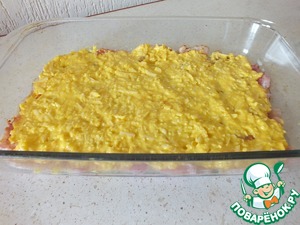 Полученную массу выкладываем на мясо и равномерно распределяем.
