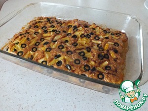 Выкладываем продукты в форму для запекания (сначала ананасы, затем маслины). -