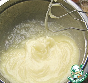 Взбивать в течение нескольких минут, пока смесь не побелеет. Затем добавить яйца по одному, каждый раз хорошо взбивая массу.