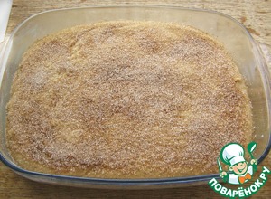 Форму 25x35 я смазала смальцем и немного присыпала мукой.