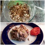 3. Грецкие орехи измельчить любым привычным для Вас способом (я кладу в два обычных полиэтиленовых пакета (два - если порвется) и на деревянной разделочной доске несильно перебиваю их молотком для мяса).