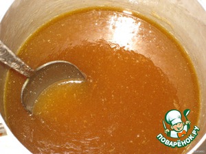 Воду, сахар, маргарин и карамельки поставить на огонь и помешивая растворить всё в однородный сироп.