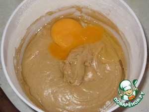 После чего берем миксер и вбиваем яйца. По одному, хорошо вымешивая после каждого.