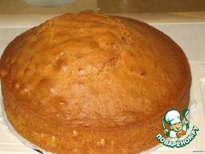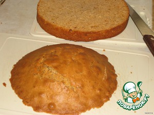 Дать тесту полностью остыть, разрезать вдоль на два коржа.