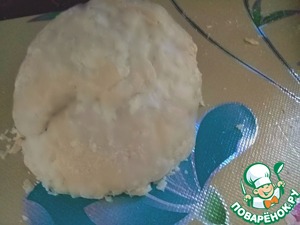 Теперь смешиваем муку с кремом, замешиваем тесто. Муки может понадобиться больше или меньше. Тесто должно получится плотное и не должно липнуть к рукам.