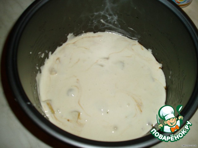 Заливаем яблоки оставшимся тестом. Я пекла в мультиварке, поэтому время запекания составило 60 минут, в духовке выпекать 40 минут. |