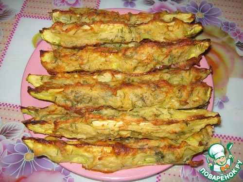 Кладём кабачковые палочки на смазанный маслом противень или антипригарный коврик.