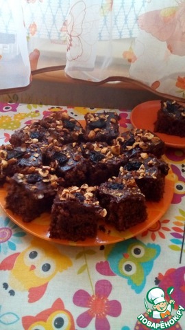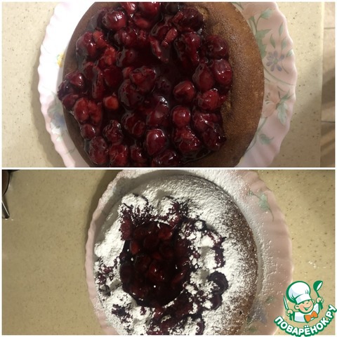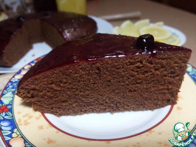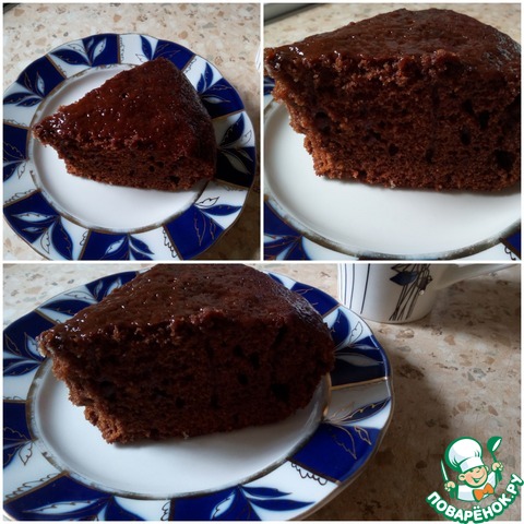 Получился рыхлый, воздушный. Буду ещё печь на днях, попробую промазать вишневым джемом (если успеет остыть, а то этот съели ещё тёплым).