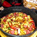 Картофель с колбасой на сковороде