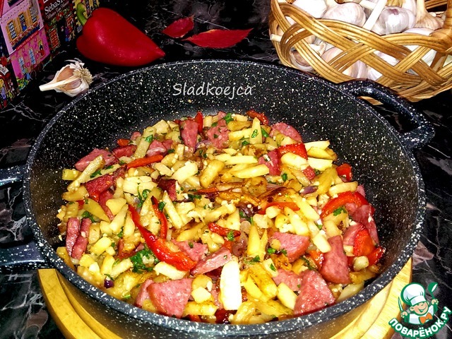 Рецепт «Картофель с колбасой на сковороде»: