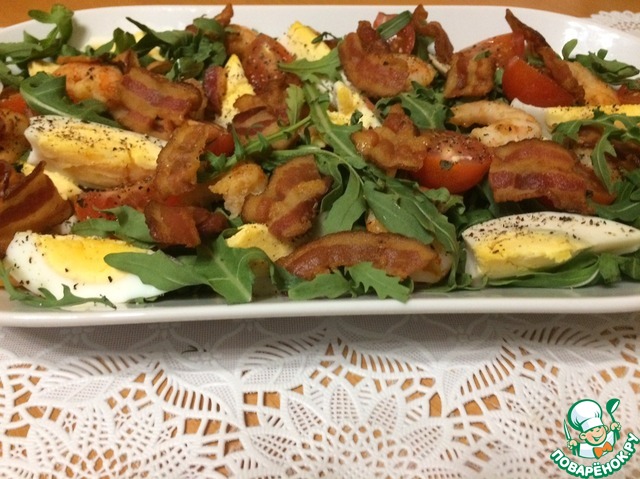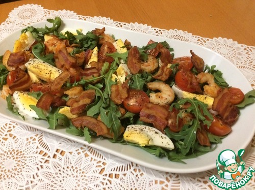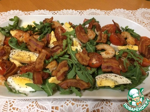 Рецепт «Салат с рукколой, креветками и беконом»: