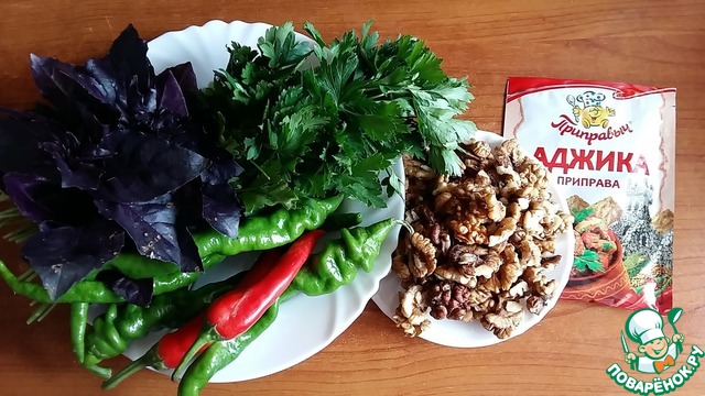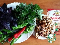 Вымыть зелень, орехи, все просушить. Перекрутить на мясорубке зелень, перцы, орехи, всыпать сухую аджику, добавить столовую ложку растительного масла (для гладкости), посолить по вкусу. |