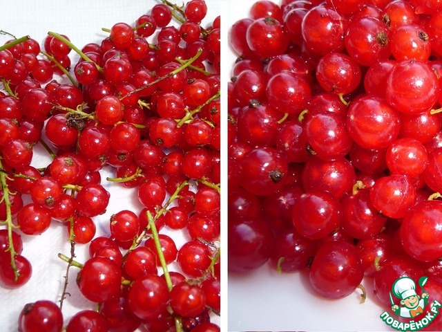 Красную смородину промыть, выложить на бумажное полотенце, просушить, удалить веточки (очень удобно с помощью вилки).