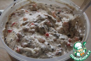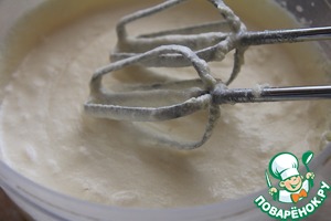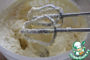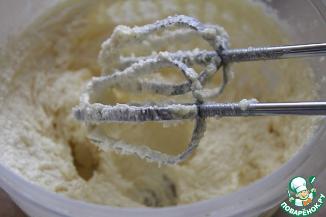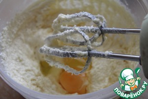 Ввести в массу по одному яйца, каждый раз взбивая до полного размешивания.