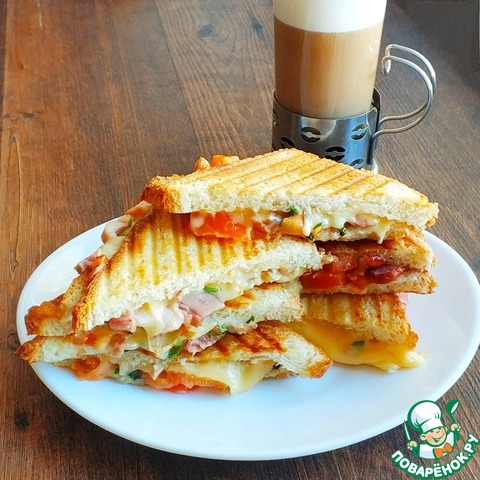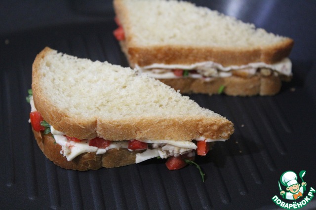 Рецепт «Горячий сэндвич с курицей и помидорами»: