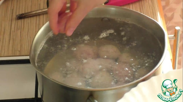 Как только вода закипит, опустите в нее фрикадельки и поварите их в течении 15-20 минут.