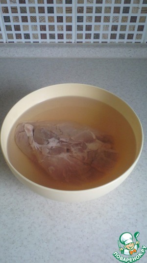 Поместите в большую миску кусок мяса. Залейте его раствором соленой воды так, чтобы мясо было полностью покрыто водой. Ориентируйтесь на свой кусок мяса. На 1 кг мяса нужна 1 ст. л. соли. Оставьте мясо в холодильнике на 24 часа. -
