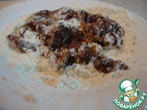 • Замаринованную печень панировать в муке.