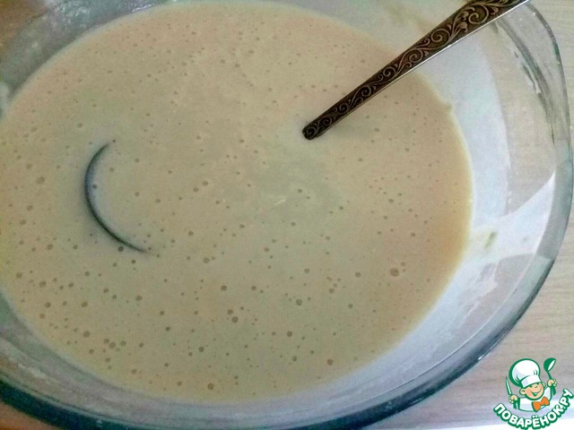 Все очень просто. Взбить яйца с сахаром, ванильным сахаром и щепоткой солью (сахара можно положить чуть больше). Затем добавляем пахту и соду. Постепенно всыпаем просеянную муку. Все тщательно перемешиваем.
