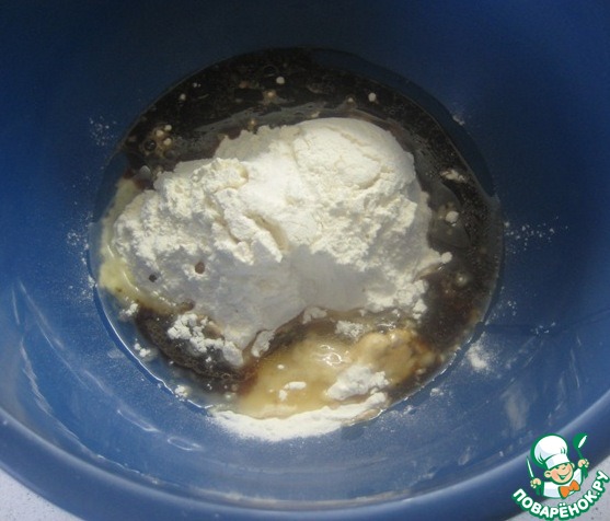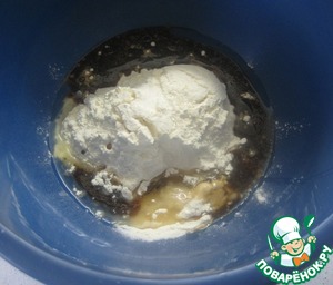 Добавить растительное масло и, постепенно вливая остывший кофе вместе с кофейной гущей, замесить тесто.