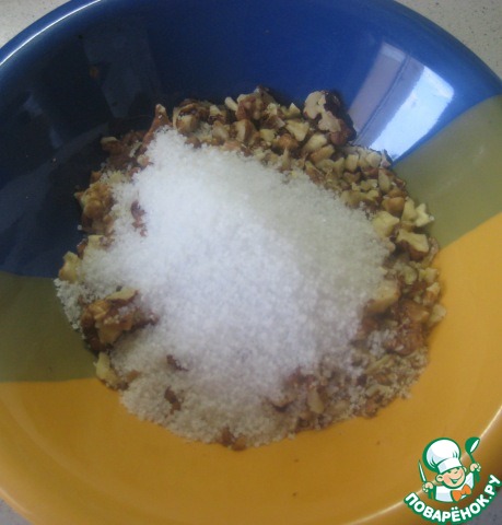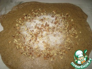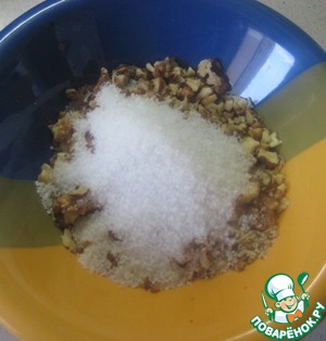 Высыпать в середину сахарно-ореховую смесь, распределить, оставляя 3-4 см края.