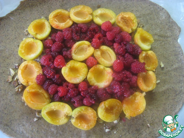 Ароматная галета с кофейным тестом с начинкой из орехов и летних фруктов! Сегодня - абрикосы и малина!