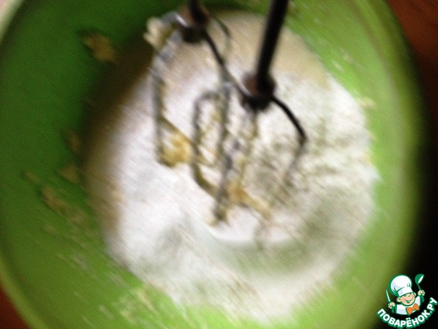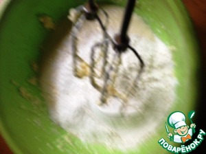 Всыпать муку, смешанную с разрыхлителем. Перемешать.