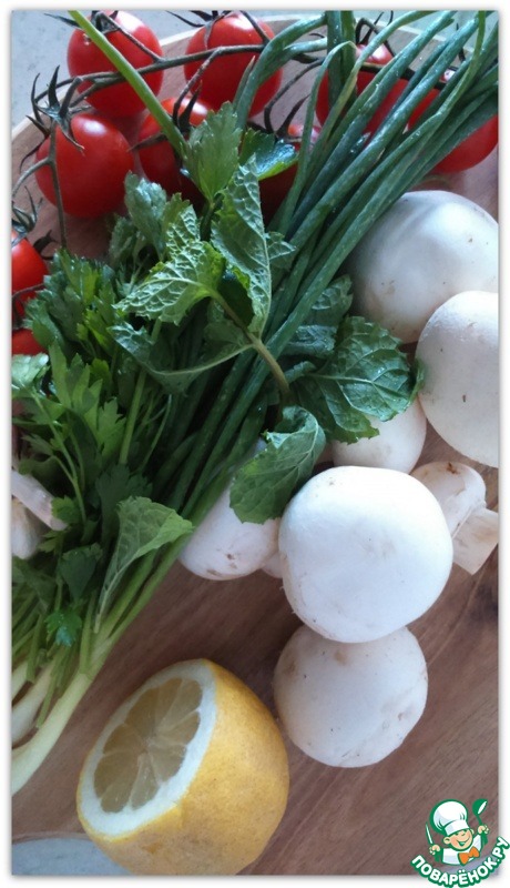 Ингредиенты для «Треска, запеченная с шампиньонами и травами»: