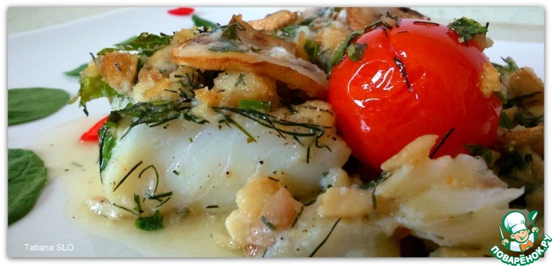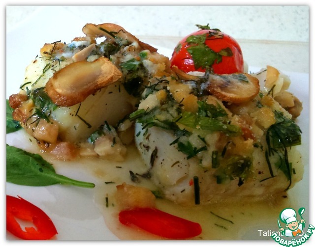 Рецепт «Треска, запеченная с шампиньонами и травами»: