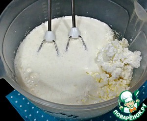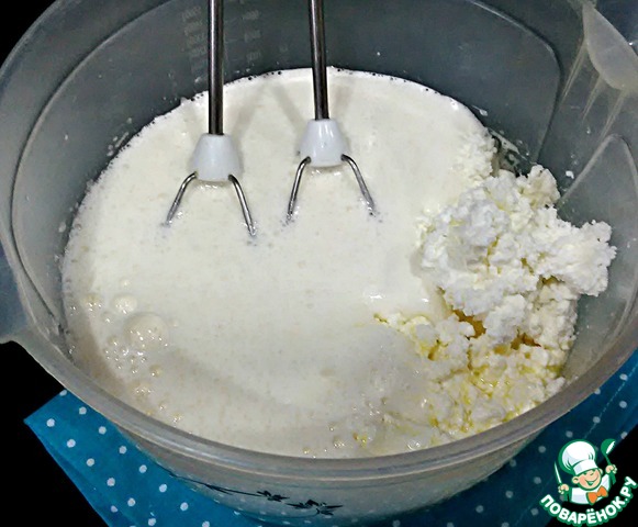 Если вы не любите в готовом изделии творожные крупинки, то творог лучше перетереть через сито, либо перебить блендером. -