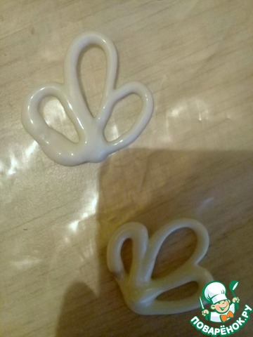 Делаем шоколадный крем. Сливки взбить до твердых пиков. Добавить шоколадную "омичку" и еще раз взбить. Отставляем крем в сторонку. Теперь делаем украшение из белого шоколада. Для этого нужно растопить шоколад на водяной бане. Полученную массу выкладываем в кондитерский шприц и на пленке (или пергаментной бумаге) делаем узоры. Затем убираем в холодильник для застывания.