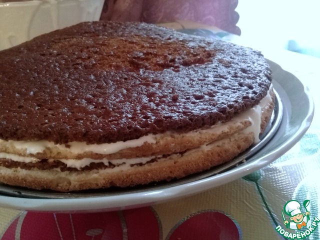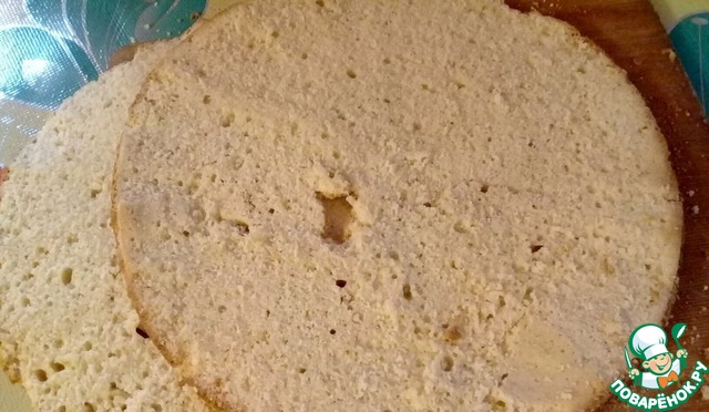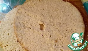 Остывшие коржи разрезаем на 2 части. Таким образом у меня получилось 4 коржа.
