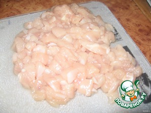 Куриную грудку порезать меленько или сделать фарш.
