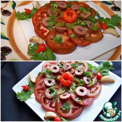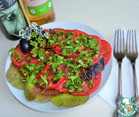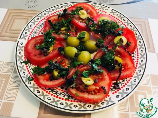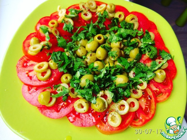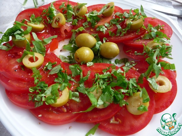 Предлагаю легкую летнюю закуску карпаччо из помидоров. Самый простой способ приобщиться к традиционной итальянской кухне. Идея взята у Алексея Онегина, спасибо автору.
