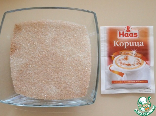 Переложить мякоть в кастрюльку, добавить сахар с корицей, тщательно перемешать.