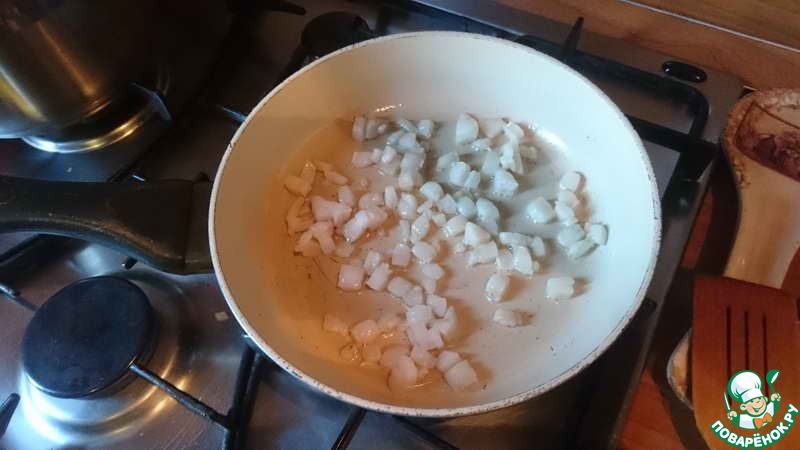 Сало обжариваем на сковороде до прозрачности. Кто любит - можно сделать шкварки.