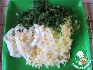 Сыр натереть, чеснок измельчить, укроп нарезать - и все смешать со сметаной (йогуртом), посолить.