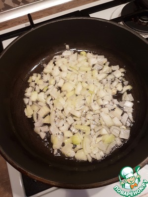 Лук нарезаем и обжариваем на растительном масле. Я делала это на оливковом, для аромата. И не мельчила в нарезке. -