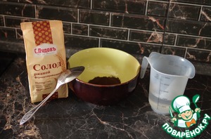 - Вода (200 мл для запаривания солода + 1 стакан (230 мл) для разбавки) — 430 мл