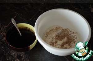 Смешиваем в посуде муку, дрожжи, разрыхлитель, соль, кориандр. По весу получается примерно 500 гр муки, но лучше мерить стаканами (я использую стакан 230 мл). К этому времени солод уже должен запариться и эта масса должна стать заметно густой, на это по времени надо минут 10. За это время масса немного остынет и нужно разбавить ее оставшимся стаканом воды (230 мл). Далее добавить 2 ст. л мёда (лучше не слишком много, чтобы хлеб не был приторно сладким) и оливковое масло. Можно заменить подсолнечным рафинированным, но потеряете в аромате. После всех смешиваний температура получившейся массы должна быть не более 55 градусов, иначе при смешивании с дрожжами они не сработают. У меня после всех описанных манипуляций масса получается примерно такой температуры.