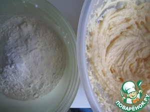 Взбить, добавить растопленное и слегка охлажденное сливочное масло (40 гр), кукурузный крахмал (20 гр) и разрыхлитель (5 гр). Взбить до однородности.