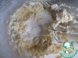 Мучную смесь добавить в масляную, взбить. Добавить молоко (75 мл) и опять взбить до однородности.