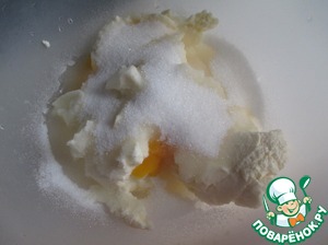 К творожной массе добавить желтки (2 шт), сахар (125 гр), сок и цедру лимона. -