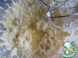 Размягченное сливочное масло (125 гр) взбить миксером несколько секунд. Продолжая взбивать, добавить постепенно сахар (125 гр), яйца по одному (2 шт) и ванильную эссенцию (1 ч. л.).