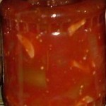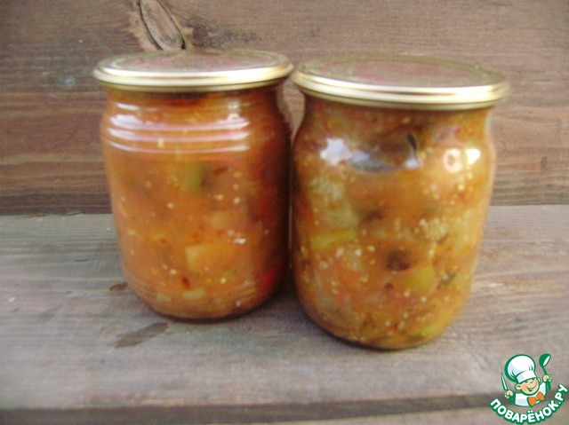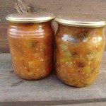 Вкусный салатик. Сахара я больше добавила и перца горького положила 4 штучки. Получилось 5 литров.