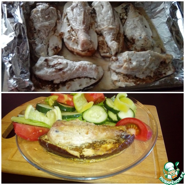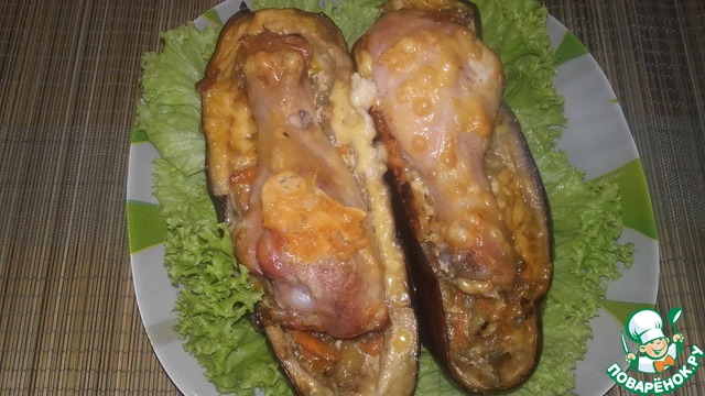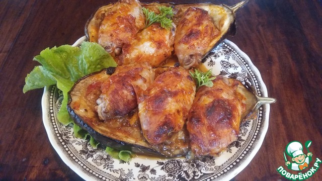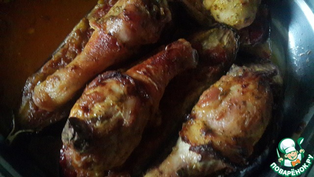 Рецепт «Куриные голени, запечённые в баклажане»: