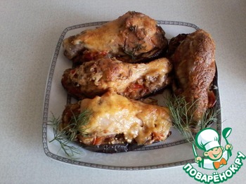 Рецепт «Куриные голени, запечённые в баклажане»: