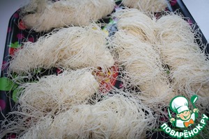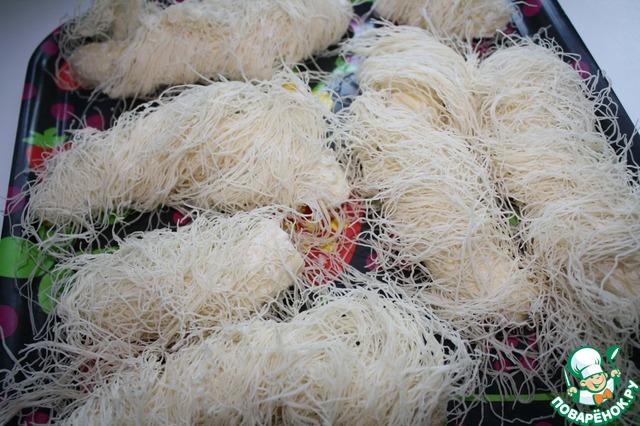 Классный рецепт!! я видела тесто фило в виде тонких пластинок, а здесь оно какое-то нитевидное, похожее на фунчозу - это разные сорта теста?
